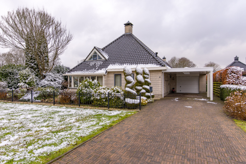 De diepe tuin is gelegen op het noordoosten en voorzien van een houten garage/schuur met elektrisch bedienbare kanteldeur. Naast de woning is de oprit gelegen die kan worden afgesloten met een toegangshek.